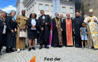 Gemeinsam auf dem Weg – Weltweite Gemeinden stellen sich und ihre Herkunftsländer an Ständen mit Speisen, Musik und landesüblicher Kleidung vor.